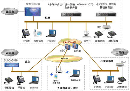 - 支持一號通業(yè)務(wù),實(shí)現(xiàn)用戶多個終端(手機(jī)、公司電話、家庭電話)綁定;支持移動辦公業(yè)務(wù),利用IP電話和軟終端實(shí)現(xiàn)遠(yuǎn)程接入,為用戶提供靈活的溝通方式。