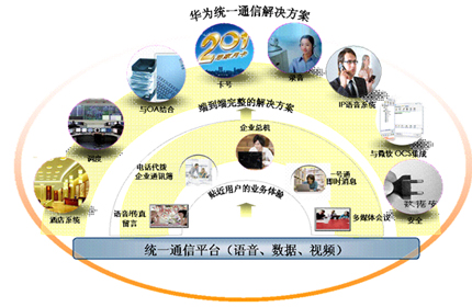 概述:華為企業(yè)統(tǒng)一通信解決方案把語音、數(shù)據(jù)、視頻融合在統(tǒng)一的平臺上,基于該平臺可以方便實(shí)現(xiàn)IP語音系統(tǒng)、語音/數(shù)據(jù)會議系統(tǒng)、統(tǒng)一消息、話務(wù)臺、無線WIFI、安全、自助管理等多業(yè)務(wù)多系統(tǒng)的融合和協(xié)作。