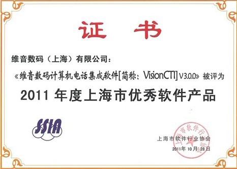 2011年11月3日,上海的秋意正逐漸彌漫,而在復旦新聞學院內(nèi)的復宣酒店報告廳中卻如激情盛夏,第三屆上海軟件創(chuàng)新論壇暨軟件質(zhì)量管理與過程改進年會在此盛大召開。作為上海軟件行業(yè)內(nèi)每年的一大盛事,所有上海的優(yōu)秀軟件企業(yè)及精英們都聚集一堂,紛紛探討交流軟件行業(yè)的最新發(fā)展和動態(tài)。維音作為專業(yè)的一站式呼叫中心軟件及解決方案提供商,再一次被授予軟件行業(yè)相關(guān)榮譽,“2011年度上海市明星軟件企業(yè)(經(jīng)營型)”,“VisionCTI—2011年度上海市優(yōu)秀軟件產(chǎn)品”。