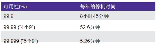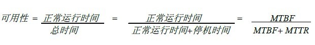 可用性是系統(tǒng)正常運(yùn)行的衡量指標(biāo),是平均故障間隔時(shí)間(MTBF)和平均修復(fù)時(shí)間(MTTR)的指數(shù),通常的表達(dá)方式是系統(tǒng)每年按需提供特定服務(wù)水平的時(shí)間百分比(又稱為“9”的數(shù)量,例如,99.99%的正常運(yùn)行時(shí)間就是“4個(gè)9”)。