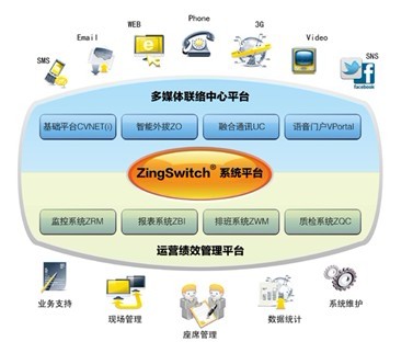 ZingFramework®CVNET全媒體聯(lián)絡(luò)中心平臺(tái)基于SIP等國(guó)際標(biāo)準(zhǔn)協(xié)議,通過(guò)SOA服務(wù)架構(gòu)實(shí)現(xiàn)聯(lián)絡(luò)中心的優(yōu)化計(jì)算,以CTI技術(shù)為核心融合語(yǔ)音通訊技術(shù)、語(yǔ)音處理技術(shù)、Internet技術(shù)、IP網(wǎng)絡(luò)通信技術(shù)、商業(yè)智能技術(shù)與企業(yè)業(yè)務(wù)系統(tǒng)緊密結(jié)合在一起,將通訊系統(tǒng)、計(jì)算機(jī)處理系統(tǒng)、網(wǎng)絡(luò)通訊技術(shù)、人工業(yè)務(wù)代表、信息資源平臺(tái)等整合成統(tǒng)一、高效的服務(wù)工作平臺(tái)。通過(guò)多渠道的聯(lián)絡(luò)平臺(tái)為客戶提供的服務(wù),集中在一個(gè)統(tǒng)一的對(duì)外聯(lián)系"窗口",采用統(tǒng)一的標(biāo)準(zhǔn)服務(wù)界面,為用戶提供多樣化、系統(tǒng)化、智能化、人性化的服務(wù)。