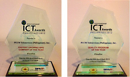 領(lǐng)先的全球外包服務(wù)方案供應(yīng)商電訊盈科專業(yè)客服于菲律賓第六屆國際信息通訊技術(shù)大獎(jiǎng)中,入圍年度增長最快業(yè)務(wù)流程外包公司及年度優(yōu)質(zhì)服務(wù)方案類別。