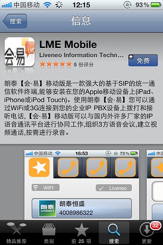 并下載,也可以在iTunes里搜索LME Mobile 或 Liveneo找到程序。