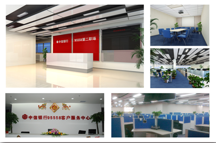 鴻聯(lián)九五九五歷經(jīng)4個月在北京市望京商圈廣順北大街33號,建成6598平方米的職場共706個坐席的場地建設(shè),并順利通過中信銀行的合格驗收。職場職場配套建有專業(yè)的實操培訓(xùn)室、理論培訓(xùn)室、班前會議室、通信傳輸機(jī)房、UPS機(jī)房、備用發(fā)電機(jī)組、會議室、休閑區(qū)和配餐區(qū)等。
