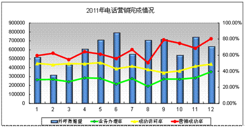 鴻聯(lián)九五自2003年開(kāi)始與廣東移動(dòng)合作電話營(yíng)銷外包項(xiàng)目,2011年共運(yùn)營(yíng)項(xiàng)目125個(gè),所涉及的市移動(dòng)公司有深圳、廣州、東莞、佛山、汕頭、揭陽(yáng)、惠州、珠海、梅州等11個(gè)地市,外撥數(shù)據(jù)量達(dá)735萬(wàn),并且終端配送類項(xiàng)目數(shù)據(jù)承接量占比超過(guò)23%,單月最高占比接近50%,在保證外呼項(xiàng)目質(zhì)量前提下,顯示出鴻聯(lián)九五呼叫中心的項(xiàng)目承接及運(yùn)營(yíng)能力,具體每月數(shù)據(jù)具體情況如下: