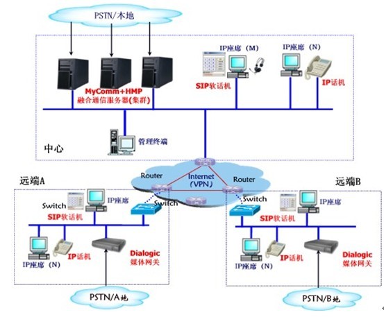 MyCommIPCC呼叫中心平臺軟件采用世界領先的Dialogic HMP主機媒體處理技術,無需交換機和板塊等硬件設備,無需布電話線,通過Dialogic HMP軟件,由主機進行媒體處理任務,即可處理所有媒體資源,實現(xiàn)IPIVR(IP語音)、IPFAX(IP傳真)、IPAgent(IP座席)、IPConference(IP會議)、IPCall(IP呼叫),以及IPRecord(IP錄音)和IPVidio(IP視頻)等功能。如果呼叫中心系統(tǒng)需要增添新的功能,例如三方或多方通話、即時回撥、通信中斷自動恢復等,只需要延用原有的Intel架構硬件平臺,利用HMP軟件提供的API函數(shù)進行開發(fā)即可完成。另外,如果業(yè)務量增長,只需提升硬件平臺的處理能力既可完成系統(tǒng)容量的升級。因此MyCommIPCC不僅經濟高效、靈活、易于擴容,而且節(jié)省了大量成本。