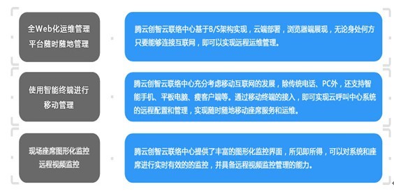 騰云創(chuàng)智云聯(lián)絡(luò)中心基于騰云創(chuàng)智云計(jì)算平臺(tái),為中小企業(yè)構(gòu)建新一代聯(lián)絡(luò)中心。系統(tǒng)基于B/S架構(gòu),全Web化運(yùn)維管理,座席圖形化監(jiān)控,支持移動(dòng)智能終端。騰云創(chuàng)智團(tuán)隊(duì)專業(yè)維護(hù),電信級(jí)品質(zhì),讓中小企業(yè)省心安心。