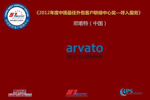 據(jù)悉,貝塔斯曼歐唯特中國在由呼叫中心與BPO行業(yè)資訊網(wǎng)(51Callcenter)主辦,國家工信部軟件與集成電路促進(jìn)中心、中國呼叫中心與BPO產(chǎn)業(yè)聯(lián)盟(CNCBA)指導(dǎo),4PS聯(lián)絡(luò)中心國際標(biāo)準(zhǔn)/呼叫中心標(biāo)準(zhǔn)作為指導(dǎo)標(biāo)準(zhǔn)”的2012年度客戶聯(lián)絡(luò)中心與CRM評選頒獎(jiǎng)典禮”中榮獲《2012中國最佳外包客戶聯(lián)絡(luò)中心獎(jiǎng)》。