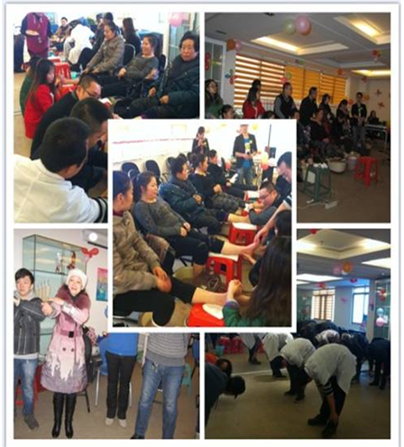2013年1月11日,呼叫中心12樓大會議室舉行了首屆員工EAP之親子足療活動。為加強(qiáng)員工對企業(yè)的幸福感和歸屬感,增進(jìn)員工及其家人與呼叫中心的互動,邀請呼叫中心員工家長親臨呼叫中心進(jìn)行參觀和足療保健體驗(yàn)。讓員工的家人了解呼叫中心的工作方式和節(jié)奏,并能學(xué)習(xí)到實(shí)用的基本足部養(yǎng)生保健知識,感受呼叫中心關(guān)愛員工和員工家人的企業(yè)文化精神?;顒赢?dāng)天共有42人參加,還邀請了貴陽一通源中醫(yī)按摩院的專業(yè)按摩師現(xiàn)場指導(dǎo)員工給家長們按摩和足療。