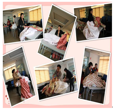 角色互換接力賽中,呼叫中心的員工們?cè)谂ρb被套,看來平時(shí)在家很少做家務(wù)啊……