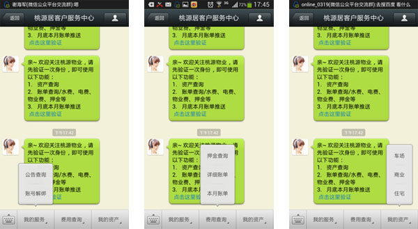 桃源居物業(yè)微信服務(wù)平臺(tái)功能展示: