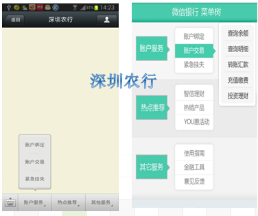 科技進步和人們對生活質(zhì)量的追求,行業(yè)競爭越來越激烈,金融業(yè)競爭尤其白熱化。如何更好地客戶互動,牢牢抓住客戶,提升用戶體驗,方便用戶服務(wù)的同時,又可以提升深圳農(nóng)行的企業(yè)品牌,增加深圳農(nóng)行的競爭力?,F(xiàn)在的微信IM互聯(lián)網(wǎng)渠道無疑提供了嶄新的渠道資源。