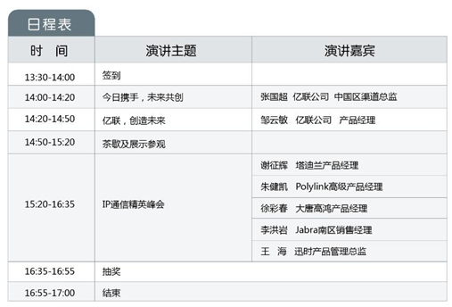 廣州作為廣東的省會城市、改革開放的前沿陣地之一,民營企業(yè)眾多,經(jīng)濟活躍,IP通信市場發(fā)展?jié)摿薮?。為此,將攜手塔迪蘭、大唐高鴻、Jabra、迅時通信、Polylink、3CX、Avaya、贊云、鼎信通達、digium、毅航通信、杭州三匯、云翌通信、Yeastar、智科通信等15家行業(yè)企業(yè),為廣州地區(qū)的客戶帶來一場IP通信精英峰會。通過IP通信生態(tài)圈來激發(fā)廣州地區(qū)IP通信市場的潛力,推動廣州地區(qū)IP通信市場的發(fā)展。