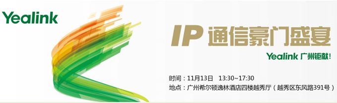11月13日,由全球TOP2 SIP話機提供商——億聯(lián)公司(Yealink)舉辦的“IP通信 聯(lián)動中國”——Yealink創(chuàng)新通信體驗之旅將走進廣州。億聯(lián)公司將攜手15家全球IP通信領(lǐng)域領(lǐng)先的企業(yè),為廣州地區(qū)的客戶帶來一場IP通信精英盛宴。