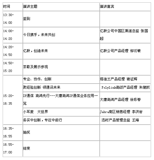 11月13日,由億聯(lián)公司(Yealink)主辦,睿威通信(VOIPcc)協(xié)辦的“IP通信聯(lián)動中國”--Yealink創(chuàng)新通信體驗之旅將走進(jìn)廣州,億聯(lián)公司將攜手塔迪蘭、大唐高鴻、Jabra、迅時通信、Polylink、3CX、Avaya、贊云、鼎信通達(dá)、digium、毅航通信、杭州三匯、云翌通信、Yeastar、智科通信、廣州華譜等16家全球頂級系統(tǒng)、板卡、耳麥等IP通信生態(tài)圈主流企業(yè)打造一場IP通信精英峰會。與會嘉賓將于與會的還有廣州200多家語音系統(tǒng)集成商一起,為您烹飪一道IP盛宴,從各個層面解析IP通信技術(shù)與市場的發(fā)展。