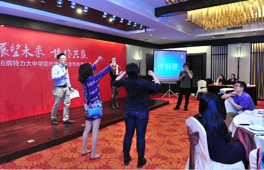在商務會議、團隊活動和產品產品展示后,到了最期待的晚宴環(huán)節(jié)。特色江南舞蹈、爵士舞、評彈、微信數錢游戲、頒獎、對口型大戰(zhàn)等,現(xiàn)場氣氛非常活躍。大家紛紛表示:”有美景、有美女、有節(jié)目、有獎品、有游戲,太High了!“