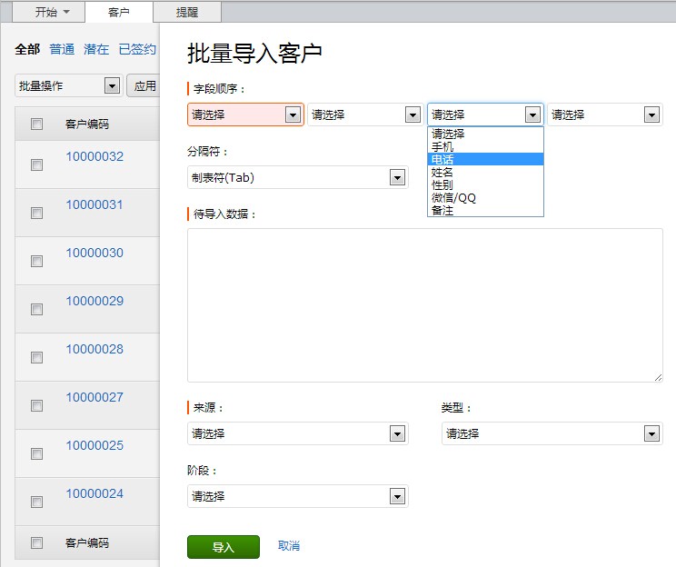 4、 客戶(hù)資料批量管理