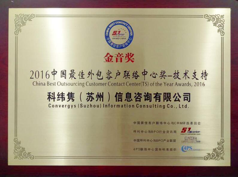 2016年10月,全球客戶(hù)管理領(lǐng)導(dǎo)者——科緯雋,再次榮獲“金音獎(jiǎng)——2016中國(guó)最佳外包聯(lián)絡(luò)中心技術(shù)支持獎(jiǎng)”。這是科緯雋(中國(guó))連續(xù)第三年榮獲此榮譽(yù)。