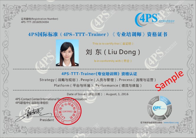 該證書由4PS國際標(biāo)準(zhǔn)組織頒發(fā),通過認(rèn)證培訓(xùn)師參加培訓(xùn)考試后獲得,是外資企業(yè)和企事業(yè)單位進(jìn)行培訓(xùn)師、培訓(xùn)經(jīng)理選用與認(rèn)定的重要依據(jù)。
