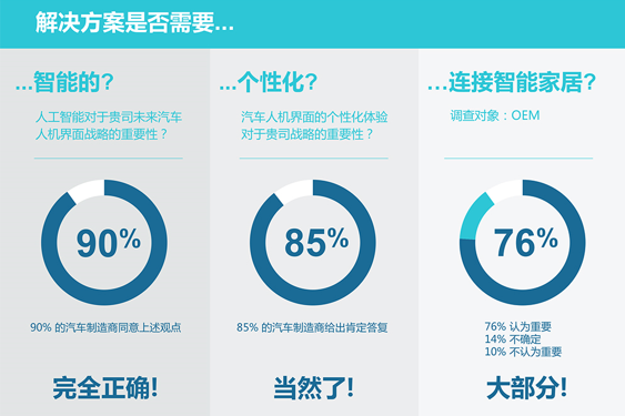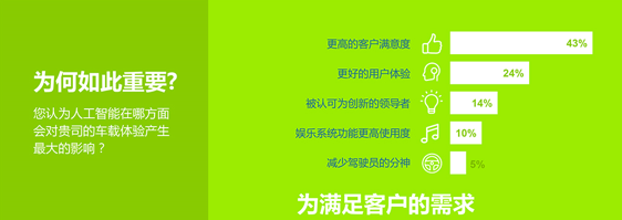 Nuance近期發(fā)布的針對世界領(lǐng)先汽車制造商開展的一項(xiàng)調(diào)查顯示,超過90%的受訪廠商確定人工智能對于他們公司的人機(jī)界面(HMI)戰(zhàn)略是很重要或非常重要,85%的受訪廠商還表示,個(gè)性化的體驗(yàn)也是很重要或非常重要。此外,43%的受訪廠商指出,人工智能對于提升車載系統(tǒng)的整體用戶滿意度將產(chǎn)生最為重要的影響。