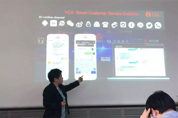 小i機(jī)器人高級(jí)副總裁許弋亞發(fā)表了“AI Drive Innovation in Customer Service”主題演講
