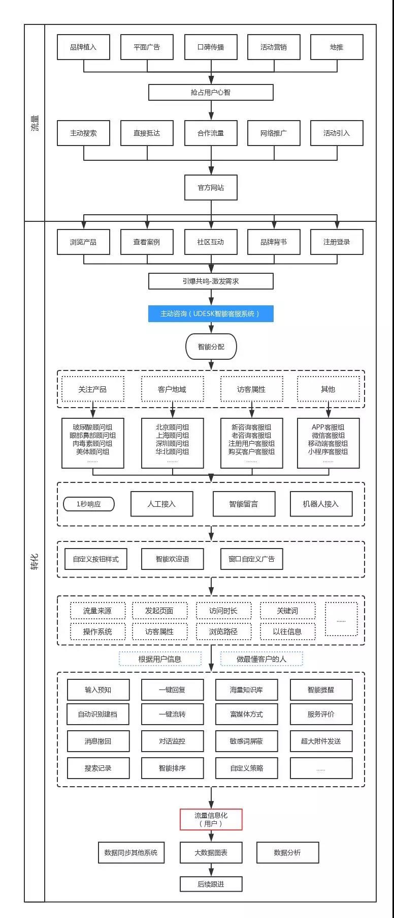 一款智能系統(tǒng)除了可以縮短訪客轉(zhuǎn)化路徑,提升流量轉(zhuǎn)化效果,最核心的點(diǎn)在于各系統(tǒng)直接的用戶(hù)行為數(shù)據(jù)留存。獲取到的信息除了可以無(wú)縫對(duì)接到企業(yè)的內(nèi)部系統(tǒng),也會(huì)同步到Udesk Insight 大數(shù)據(jù)分析系統(tǒng),也就是說(shuō),訪客是誰(shuí)?從哪來(lái)?怎么來(lái)?到哪去?想干什么?......每一個(gè)行為數(shù)據(jù)都被可以被記錄和保存下來(lái),并實(shí)現(xiàn)數(shù)據(jù)分析。只有珍惜流量,流程才能向你微笑;只有善待流量,流量才能為你所用。對(duì)于新氧這個(gè)爆款產(chǎn)品,流量再大也有邊界,轉(zhuǎn)化才是內(nèi)核。新氧之所以能在千億級(jí)市場(chǎng)一往無(wú)前,是因?yàn)閳?jiān)持以用戶(hù)需求為導(dǎo)向,以產(chǎn)品價(jià)值為核心,通過(guò)細(xì)化運(yùn)營(yíng)和客戶(hù)服務(wù),讓內(nèi)核無(wú)限接近流量邊界。