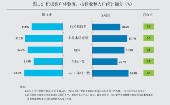 銀行業(yè)和保險(xiǎn)業(yè)都屬于金融行業(yè),但兩者在客戶體驗(yàn)度的比較上卻存在明顯的差異,從下圖可以看出,客戶在保險(xiǎn)行業(yè)的客戶體驗(yàn)要落后于銀行業(yè)。不可否認(rèn),銀行業(yè)在與客戶的接觸點(diǎn)上擁有更多的機(jī)會,他們在提升客戶體驗(yàn)的技術(shù)上也領(lǐng)先于保險(xiǎn)業(yè)。所以,保險(xiǎn)業(yè)必須找到適應(yīng)自身業(yè)務(wù)場景的客戶服務(wù)系統(tǒng)和技術(shù),開發(fā)全新的客戶體驗(yàn)渠道。