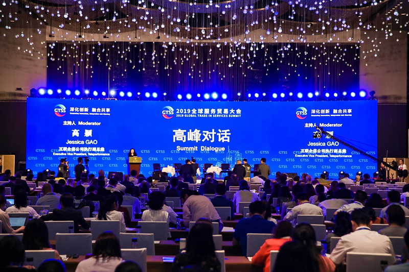 圖:Teleperformance執(zhí)行副總裁高穎女士參加2019全球服務(wù)貿(mào)易大會并主持高峰對話