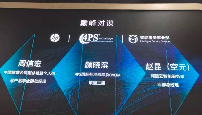 4PS國(guó)際標(biāo)準(zhǔn)/CNCBA主席顏曉濱、惠普中國(guó)副總裁周信宏、阿里云智能服務(wù)部總經(jīng)理空無(wú)共同出席,并作巔峰對(duì)話。