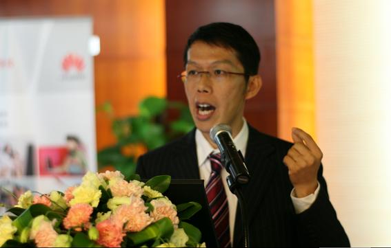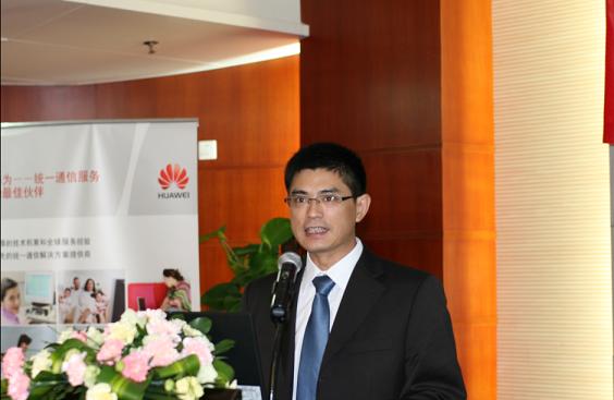 華為軟件UC產(chǎn)品總監(jiān)許國(guó)華做“攜手邁入全業(yè)務(wù)融合時(shí)代,助力企業(yè)騰飛”的主題演講
