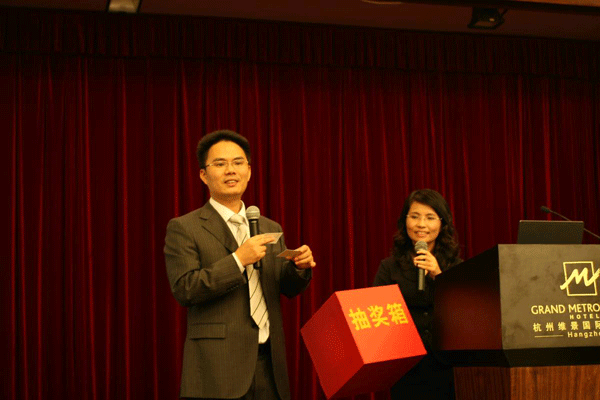 輕松的抽獎時刻又開始了,華為企業(yè)業(yè)務(wù)華東區(qū)總代華蓋科技李永勝經(jīng)理興奮地抽出三個幸運大獎,炫麗的Jabra高級藍牙耳機馬上名花有主嘍!