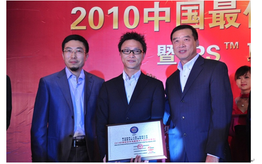 維音大中華區(qū)市場營銷副總裁洪偉堅先生(中)--“2010最佳外包聯絡中心獎(呼出服務)”。