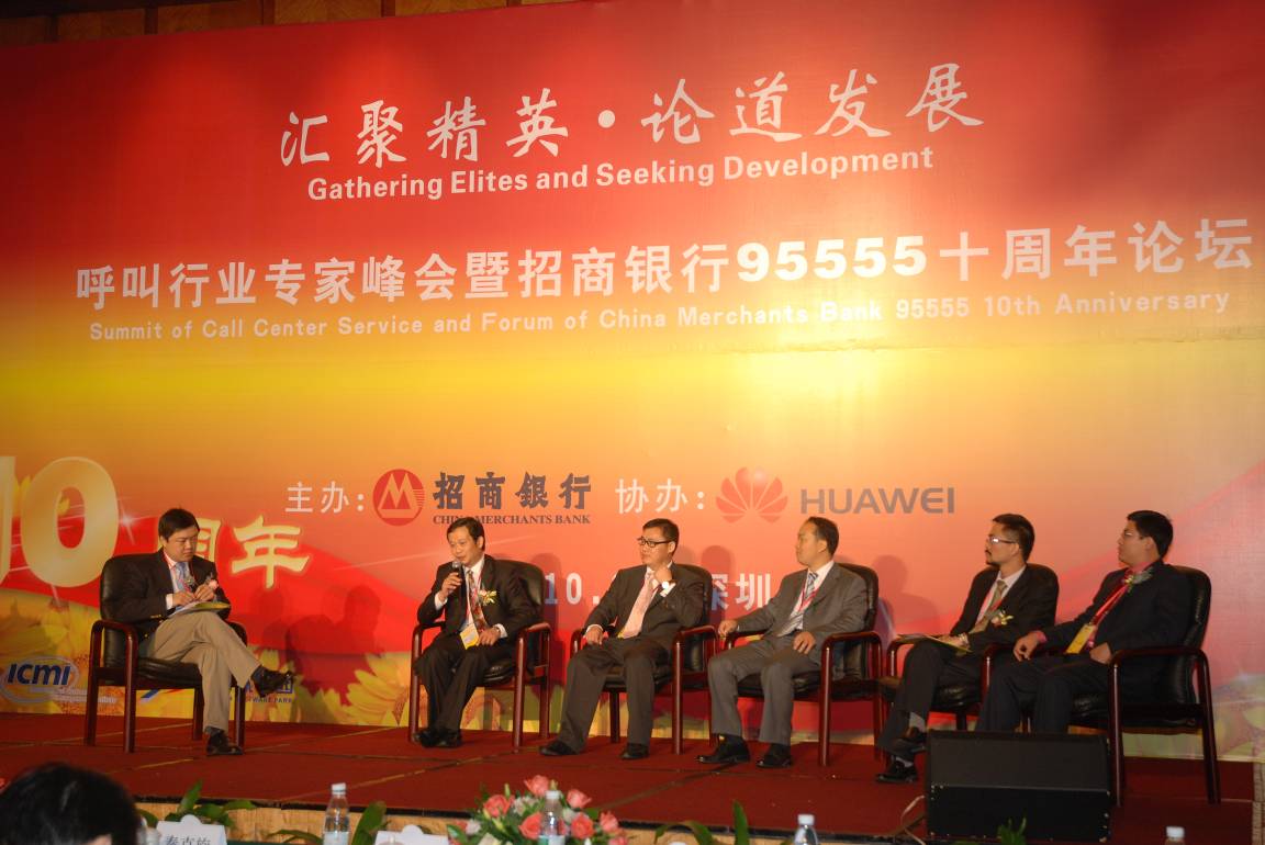 51Callcenter 10月29日(記者安然)報(bào)道:10月23日,由招商銀行主辦,華為技術(shù)有限公司協(xié)辦的“匯聚精英·論道發(fā)展”呼叫行業(yè)專家峰會(huì)暨招商銀行95555十周年論壇在深圳圣廷苑酒店舉行。招商銀行總行副行長(zhǎng)丁偉先生和華為公司高級(jí)副總裁鄧飚先生出席了本次大會(huì),中國(guó)呼叫中心與BPO協(xié)會(huì)(CNCBA)主席顏曉濱受邀出席論道。來(lái)自銀行、證券、基金、保險(xiǎn)等38家主要金融機(jī)構(gòu)及南航、聯(lián)想、萬(wàn)科、支付寶等30家國(guó)內(nèi)知名企業(yè)高管逾200余人參加,與會(huì)嘉賓分享了國(guó)際與國(guó)內(nèi)呼叫中心建設(shè)經(jīng)驗(yàn)、信息化的發(fā)展潮流、呼叫中心戰(zhàn)略轉(zhuǎn)型與運(yùn)營(yíng)管理能力提升等內(nèi)容。華為鄧飚先生表示:“十年來(lái),招商銀行電話銀行中心的成功表明了華為向客戶提供定制化、個(gè)性化貼身服務(wù)策略的成功。”