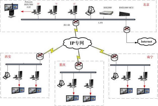 為了充分滿(mǎn)足此項(xiàng)目的應(yīng)用需求,中康人才培養(yǎng)系統(tǒng)在此項(xiàng)目中所采用的核心和主要終端設(shè)備全部采用寶利通(POLYCOM)最新技術(shù)的高清會(huì)議產(chǎn)品及其他周邊設(shè)備。項(xiàng)目一期由1臺(tái)RMX1000 MCU,1臺(tái)RSS2000錄播服務(wù)器,9臺(tái)HDX7002XL組成,在應(yīng)用上分為兩部分:主要核心設(shè)備---采用寶利通(POLYCOM)最新技術(shù)的多點(diǎn)控制單元RMX1016C及高清錄播RSS2000,滿(mǎn)足培訓(xùn)中心對(duì)整個(gè)系統(tǒng)的會(huì)議召集及管理,系統(tǒng)還可以進(jìn)行高清的錄播直播,把相關(guān)的培訓(xùn)內(nèi)容制作成培訓(xùn)課件存檔分發(fā)給培訓(xùn)學(xué)員;其他各地單位設(shè)備:分別采用高清硬件終端HDX7002及高清實(shí)物展臺(tái)、高清DV等各類(lèi)會(huì)議室設(shè)備,終端支持雙流、實(shí)物展臺(tái)及移動(dòng)DV圖像的輸入,根據(jù)不同的培訓(xùn)需求切換不同的圖像場(chǎng)景,為培訓(xùn)中心設(shè)計(jì)了一套完整視頻培訓(xùn)解決方案。