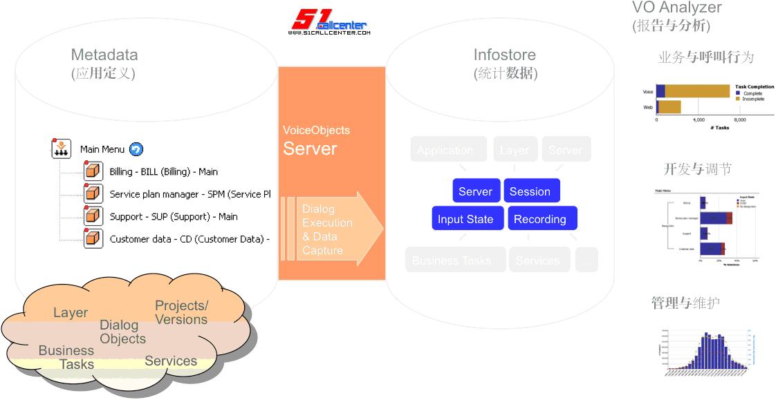 Voxeo 是一個致力于自服式語音平臺領(lǐng)域的運營商和產(chǎn)品提供商,也是目前美國最大的開放式IVR平臺提供商。Voxeo提供基于SIP和VoiceXML、CCXML標(biāo)準(zhǔn)的語音應(yīng)用開發(fā)和部署平臺,使得開發(fā)人員可以很容易地開發(fā)和部署復(fù)雜的IVR應(yīng)用系統(tǒng)。Voxeo的VoiceObjects 為企業(yè)和運營商提供統(tǒng)一自服電話門戶和實現(xiàn)多渠道、跨平臺的“一次設(shè)計,到處部署”應(yīng)用開發(fā)和部署。