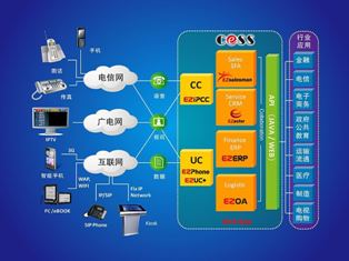 上圖: 三網(wǎng)融合下億迅的新一代客服中心可實現(xiàn)多元企企聯(lián)盟的商務(wù)活動