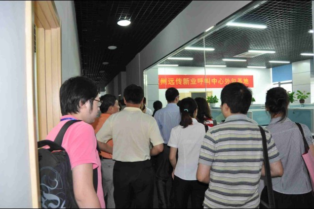 2010年7月12日,盛夏中難得的清涼,位于杭州錢江經(jīng)濟(jì)開發(fā)區(qū)的遠(yuǎn)傳新業(yè)呼叫中心BPO基地迎來了浙江省快遞協(xié)會(huì)一行20多人。在遠(yuǎn)傳新業(yè)徐立新董事長(zhǎng)及金哲總經(jīng)理的陪同下,由快遞協(xié)會(huì)潘尚總會(huì)長(zhǎng)、張榮君秘書長(zhǎng)等協(xié)會(huì)領(lǐng)導(dǎo),及郵政EMS、申通、圓通、順風(fēng)、中外運(yùn)、天天、韻達(dá)、中通、浙江郵電學(xué)院等企事業(yè)領(lǐng)導(dǎo)組成的參觀團(tuán),參觀考察了遠(yuǎn)傳新業(yè)呼叫中心BPO基地7000多平方坐席大樓及可承載1500坐席的電信級(jí)機(jī)房??疾炱陂g,快遞協(xié)會(huì)及各快遞公司領(lǐng)導(dǎo),深入一線坐席,從客服軟件界面、硬件配備及人員服務(wù)話術(shù)等方面直觀的體驗(yàn)客戶服務(wù)過程中的細(xì)微之處。在呼入客戶服務(wù)區(qū),快遞協(xié)會(huì)領(lǐng)導(dǎo)考察了遠(yuǎn)傳新業(yè)熱線接入服務(wù),統(tǒng)一集中管理模式給大家留下了深刻的印象。