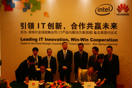 2012華為云計(jì)算大會(huì)(HCC2012)今日在上海舉行,在大會(huì)上,華為與英特爾共同宣布,雙方正式簽署合作協(xié)議,建立IT產(chǎn)品與解決方案的全球戰(zhàn)略合作關(guān)系。