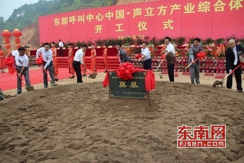 9月22日上午,備受關(guān)注的東部呼叫中心中國·聲立方產(chǎn)業(yè)綜合體項(xiàng)目正式開工建設(shè)。副省長陳榮凱,寧德市委書記廖小軍,中國呼叫中心BPO產(chǎn)業(yè)聯(lián)盟主席顏曉濱,智造(中國)有限公司總裁、董事長蔡文革等為項(xiàng)目奠基培土。