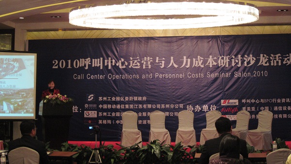 51Callcenter 1月18日報道(記者李莎):1月15日,由中國移動蘇州分公司、蘇州市工業(yè)園區(qū)婁葑鎮(zhèn)政府主辦,呼叫中心與BPO行業(yè)資訊網(51Callcenter)支持,蘇州工業(yè)園區(qū)杰通企業(yè)服務外包有限公司、英格瑪(中國)人力資源集團承辦,亞美亞(中國)通信設備公司、上海井星信息科技有限公司協(xié)辦的主題為“如何降低呼叫中心運營與人力成本”的研討會在上海紫金山大酒店隆重舉辦,呼叫中心與BPO行業(yè)資訊網執(zhí)行總監(jiān)唐愛琴將受邀出席并做致辭。