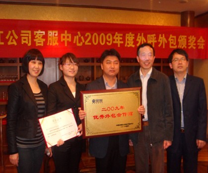 據(jù)悉,2010年4月29日,在中國移動浙江公司客服中心2009年度外呼外包頒獎會上,浙江電銷科技有限公司摘取了“2009年優(yōu)秀外包合作商金獎”、“2009年下半年運營規(guī)范第一名”、“2009年下半年客戶滿意度第一名”三項桂冠!
