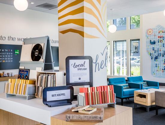 打造顛覆傳統(tǒng)的網(wǎng)點零售體驗:別的銀行都是通過傳單折頁來介紹金融產(chǎn)品,安快銀行則選擇生動可視化的形式,例如在網(wǎng)點擺放一部梯子、 一堆油漆和刷子,來展示他們的按揭貸款產(chǎn)品。網(wǎng)點內(nèi)設(shè)有咖啡吧、休閑區(qū)、音樂中心,供客戶休閑娛樂,沉浸其中享受時光。不僅如此,為了改善客戶的生活并支持當?shù)仄髽I(yè)的成長,網(wǎng)點內(nèi)還設(shè)置專門的特色商品零售展示區(qū)。網(wǎng)點白天是銀行,夜晚和周末就成為活動中心,可以放電影、練瑜伽、演短劇、做手工,供客戶娛樂休閑。