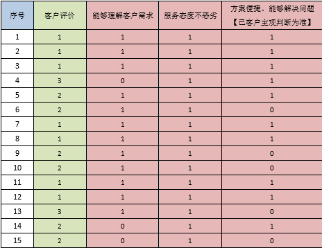 如果運(yùn)用這個(gè)評(píng)估質(zhì)檢標(biāo)準(zhǔn)同客戶滿意度相關(guān)性的計(jì)算模型,對(duì)公司的打分表和客戶滿意度進(jìn)行相關(guān)性計(jì)算,不出意外的話,質(zhì)檢標(biāo)準(zhǔn)和客戶滿意度的相關(guān)性會(huì)很差。