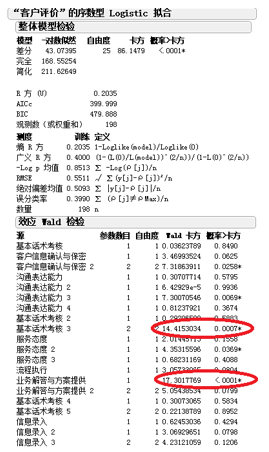 使用JMP軟件中的Logistic分析操作下,得出的W檢驗(yàn)數(shù)據(jù)如下: