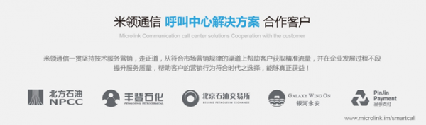 上海米領(lǐng)通信技術(shù)有限公司是中國(guó)領(lǐng)先的企業(yè)統(tǒng)一通信整合服務(wù)提供商。旗下MicroLink是目前國(guó)內(nèi)企業(yè)統(tǒng)一通信及呼叫中心整體解決方案的專業(yè)品牌,一直從事大型呼叫中心設(shè)備研究、制造,CRM/ERP系統(tǒng)開發(fā)以及為企業(yè)通信提供整體的解決方案,核心技術(shù)已達(dá)到業(yè)內(nèi)領(lǐng)先水平,極具市場(chǎng)競(jìng)爭(zhēng)力。上海米領(lǐng)通信技術(shù)有限公司致力于提供擁有極致客戶體驗(yàn)、功能全面以及高性價(jià)比的呼叫中心整體方案,已經(jīng)服務(wù)于國(guó)內(nèi)外數(shù)十個(gè)領(lǐng)域的上百家企業(yè),為企業(yè)創(chuàng)造更多的價(jià)值,得到用戶的一致的認(rèn)可和好評(píng)。