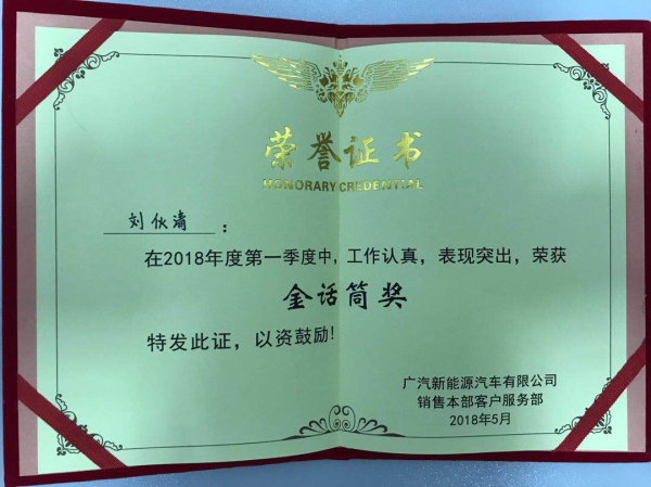 為了感謝廣州中心客服人員在廣汽客戶服務(wù)方面做出的重要貢獻(xiàn),5月30日在廣汽新能源智能客服中心舉行了第一季度頒獎(jiǎng)儀式,廣汽新能源客戶服務(wù)部孫強(qiáng)部長等領(lǐng)導(dǎo)親自給優(yōu)秀客服人員頒發(fā)了“金話筒”獎(jiǎng),以示鼓勵(lì)。