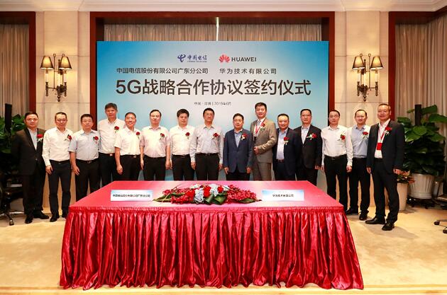 6月14日,中國電信廣東公司與華為公司聯(lián)手舉行“5G戰(zhàn)略合作協(xié)議”簽訂儀式。中國電信廣東公司總經(jīng)理陳志然、副總經(jīng)理張國新、楊小豐,華為公司副董事長徐直軍、董事彭中陽、電信系統(tǒng)部部長郭海龍、廣東代表處代表周建軍等出席。