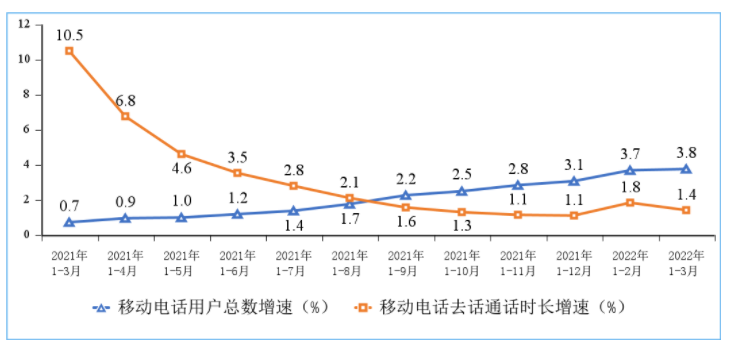 圖7 移動電話用戶增速和通話時(shí)長增速情況