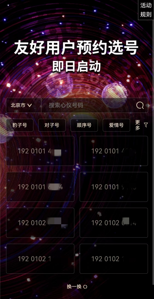 目前,192號(hào)段預(yù)約活動(dòng)已經(jīng)正式上線,從官方預(yù)約頁(yè)面來看,此次192號(hào)段預(yù)約選號(hào)同步開啟了靚號(hào)預(yù)約功能,滿足了時(shí)下用戶對(duì)號(hào)碼的個(gè)性化需求,且靚號(hào)種類較為豐富,用戶可以根據(jù)自身需求選擇套餐內(nèi)容,價(jià)格方面也很親民,全國(guó)31個(gè)省(不含港、澳、臺(tái)地區(qū))的用戶均可預(yù)約。不過,本輪號(hào)碼預(yù)約只到6月26日,每個(gè)人僅能預(yù)約辦理一個(gè)賬號(hào),所以時(shí)間有限,想嘗鮮的朋友可以關(guān)注“中國(guó)廣電5G”官方微信公眾號(hào)進(jìn)行友好號(hào)碼的預(yù)約。