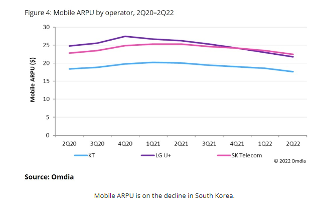 Omdia分析師Anshika Gandotra在報告中寫到:“在經(jīng)歷了兩年的持續(xù)增長后,韓國電信(KT)和LG U+的移動ARPU重新開始下降,而SK電訊(SK Telecon)則保持相對平穩(wěn),但其5G用戶增長和收入增長已經(jīng)陷入停滯狀態(tài)?!?/span>